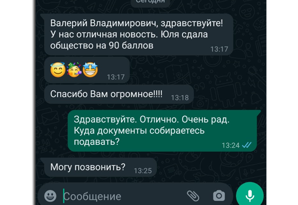 Мои выпускники учатся в ВШЭ, РАНХиГС, Финуниверситете, МПГУ и других престижных вузах страны.